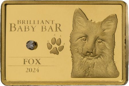 The latest edition of the series features the fox as an delicate minting. This gold bar, made of pure 9999 gold, captivates with spectacular details: it includes a genuine white diamond with SI clarity. Against the pure gold background, the gemstone’s brilliance is especially striking. The fox motif has also been crafted in the quality “proof.” Another highlight is the fox’s paw print.