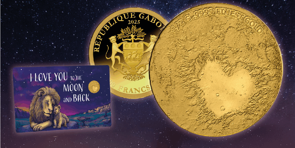 This heavenly gold coin is a captivating tribute to love! Struck from pure 9999 fine gold, it features an embossed message of love with a beautifully detailed depiction of the moon’s surface and a heart-shaped crater — crafted in the highest Proof quality. Presented in a lovingly designed coin card showcasing two cuddling lions, it’s a truly enchanting keepsake for someone special.